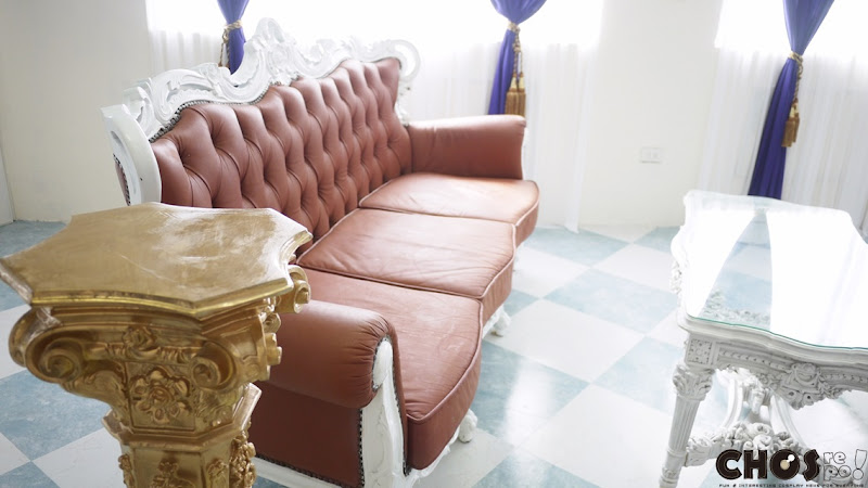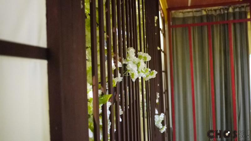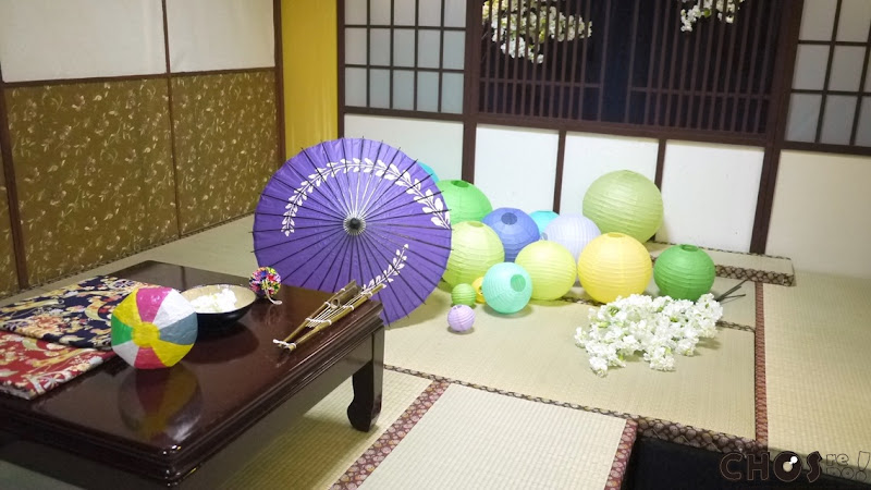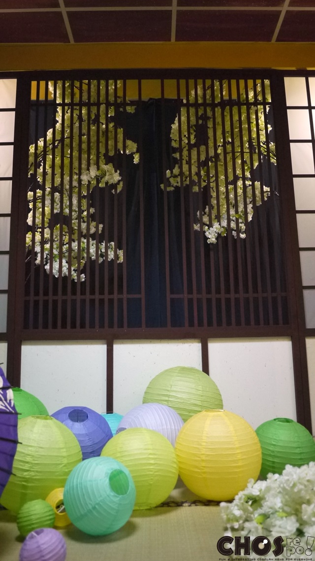 以和風為主題,四面有兩面一樣用布幕作隔間。換裝空間